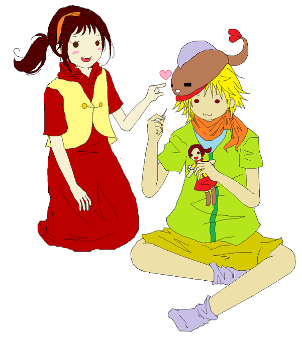 この前、あつしちょんに絵描いてほしいって頼まれたから、描いてみたぞい。あつしちょんの考えたキャラで、ハルくんとユーミンちゃん。