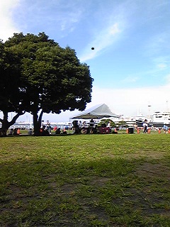 ハワイアンイベントが近くでやっていたので、せっかくだからコナビールを買ってみる。なんと、1本600円。た、高い! でも、せっかく横浜まで遊びに来たのに、指をくわえて我慢なんてできるかいっ! と勢いで買ってみる。コナビール初体験。うまうま☆