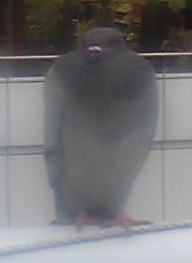 北千住駅周辺に住むハトしゃん、雨にぬれて寒そう。。