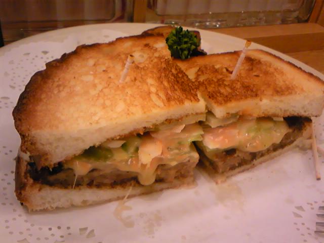 分厚いハンバーグが挟まってます゚+.・゚+。(〃・ω・〃)。+゚・.+゚