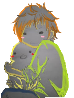 なんか光ったものから小鳥をぎゅっ!とかばってる感じに見える!